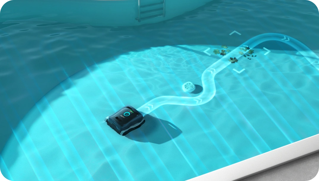 AI Navium™ Mode builds autonomous cleaning plans using pool size, weather, and cleaning history—optimizing power and timing for hands-free maintenance